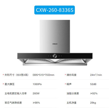 老板 (Robam ) 24立方风量 1060Pa风压 双腔双吸 一唤即净大吸力油烟机燃气灶套装8336S+9B312