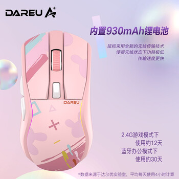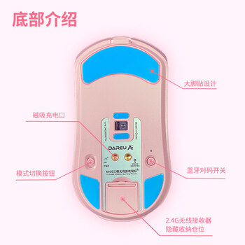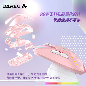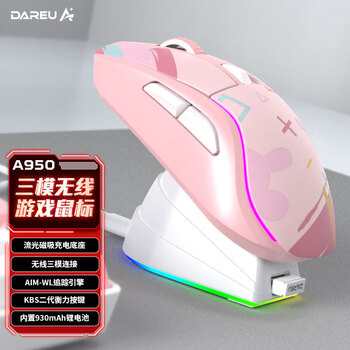达尔优(dareu)A950糖果粉适合中大手无线2.4g有线蓝牙三模电竞游戏鼠标轻量化KBS2.0衡力RGB充电带底座