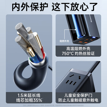 倍思 插线板 100W苹果快充排插//插座/接线板/笔记本桌面氮化镓 Type-c口+USB口(2A2C)