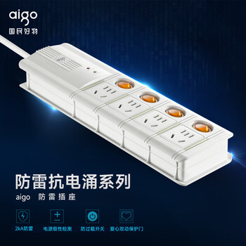 爱国者(aigo)防雷插座/插线板/插排/排插/接线板/拖线板 抗电涌防过载防雷模块极性检测 4位分控S4K4全长3米