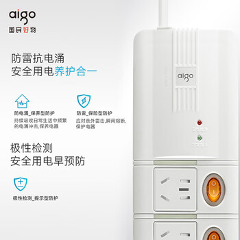 爱国者(aigo)防雷插座/插线板/插排/排插/接线板/拖线板 抗电涌防过载防雷模块极性检测 6位分控S6K6全长3米