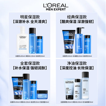 欧莱雅水能氨基酸洁面185ml 欧莱雅男士水能保湿滋润乳50ml 欧莱雅男士水能保湿增强爽肤水130ml