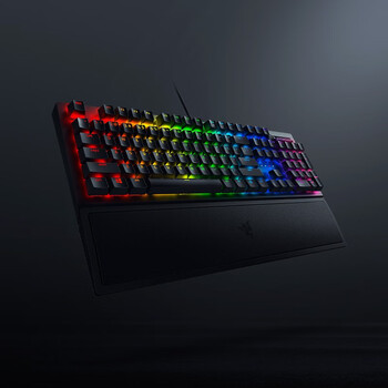 雷蛇(Razer)黑寡妇蜘蛛V3 机械键盘 游戏电竞电脑 全新透明机械轴 RGB灯效带腕托 104键 绿轴