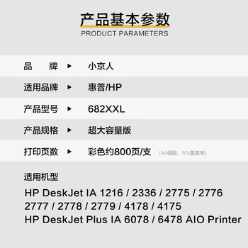 小京人适用惠普682墨盒可加墨惠普HP 2776 2775 6078 2777 2778 4178 6478 2779 4175 2336 1216打印机墨盒