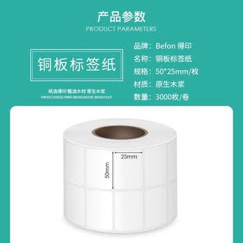 得印(befon)不干胶标签纸 铜版纸 50mm*25mm*3000枚 双排 条码纸 打印贴纸