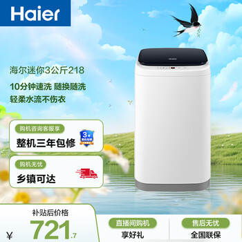 海尔(Haier)小型波轮洗衣机全自动 3KG迷你婴儿内衣裤专洗 除菌螨 租房一人不占地 家用家电补贴 XQBM30-218