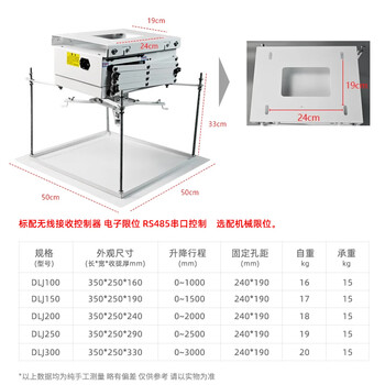鲸米(JINGMI)投影仪电动吊架DLJ100隐藏式吊顶支架1米两面交剪式遥控升降电动伸缩投影机吊架电子限位