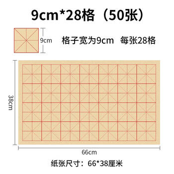 六品堂宣纸书法练习用纸 加厚毛边纸半生熟写毛笔字专用竹浆 9cm*28格米字格仿古作品纸50张【升级加厚】