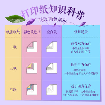 晨光(M&G)紫晨光 三联整张电脑打印纸彩色针式打印纸241-3 80列撕边白红黄 出入库送货清单1000页/箱
