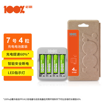 100% 必霸(peakpower) 充电电池7号4粒800mAh+4槽USB充电套装 可充5号7号 适用于游戏柄/玩具等 7号/AAA
