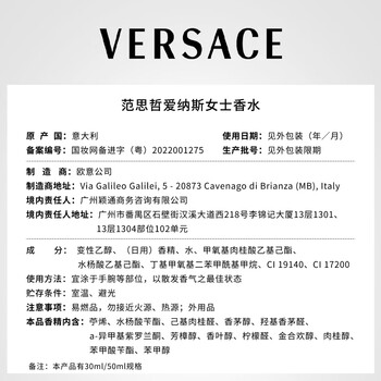 范思哲(VERSACE)爱纳斯女士香水30ml 持久留香送老婆生日礼物女士爱神女士
