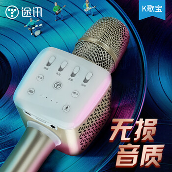 途讯V2青春版话筒音响一体麦克风无线蓝牙麦克K歌手机专用无线家用电视车载唱歌神器 香槟金