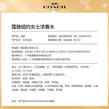 蔻驰(COACH)纽约女士浓香水30ml礼盒生日礼物送女友香氛持久留香