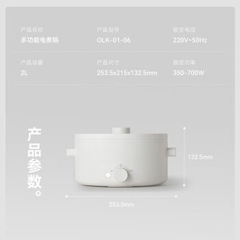 olayks立时 电煮锅电热锅小电锅宿舍泡面小火锅多功能锅煎炒煮炸一体多用途电热锅 2L