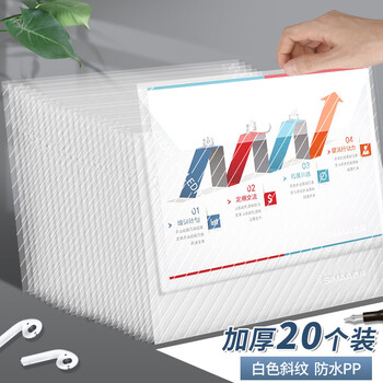 西玛(SIMAA)20个装 A4按扣学生透明文件袋 条纹加厚 科目袋 防水试卷资料收纳袋档案袋 20096