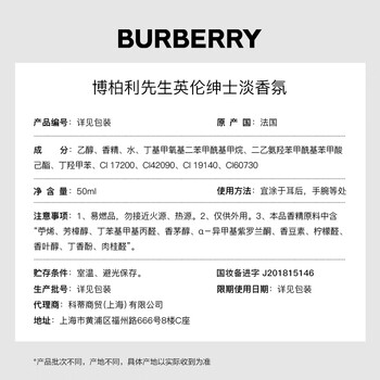 博柏利(BURBERRY)先生英伦绅士淡香氛50ml节日礼物生日礼物送男友送老公送男生