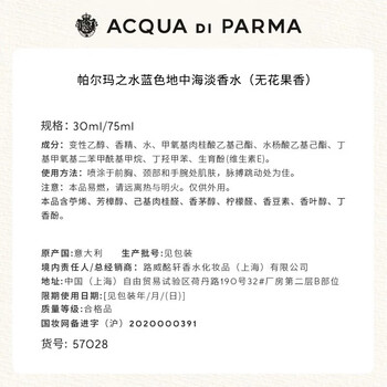 帕尔玛之水蓝色地中海香氛无花果香 30ml