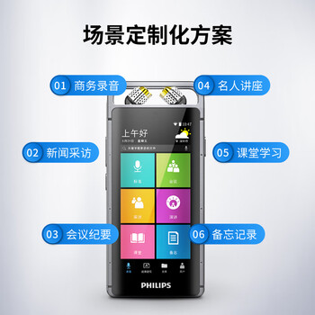 飞利浦 AI智能录音笔VTR9100 32G指纹版 8麦克风阵列 语音转文字高清降噪 支持云储存录音器