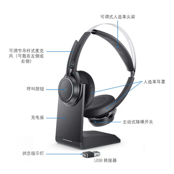 戴尔 Premier 主动式降噪无线耳机 - WL7022 主动式降噪 HI-FI高保真 智能传感器 办公耳机