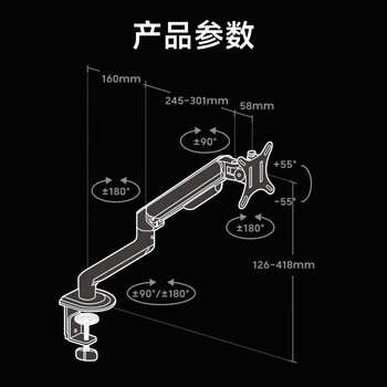 显示器支架×1、桌面夹具包×1、穿孔夹具包×1、螺丝包×1、说明书×1、合格证×1