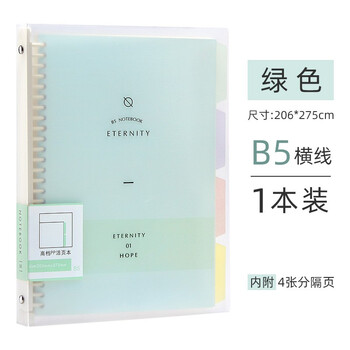 文谷(Wengu)B5活页笔记事本学生60张可拆卸办公商务初高中大学文具26孔横线内芯四色索引分隔页绿色B17-B5/D