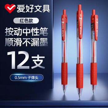 爱好(AIHAO)【开学必备】签字笔0.5mm按动中性笔子弹头教师批改红笔标记纠错水笔办公用品12支 489