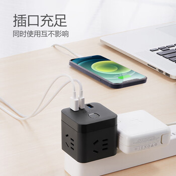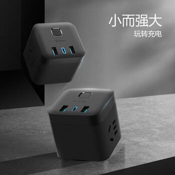 公牛(BULL)20W PD苹果快充魔方插座/插线板/插排/接线板 Type-c+USB+3插孔 无线 黑色 GNV-UU220WH总控开关