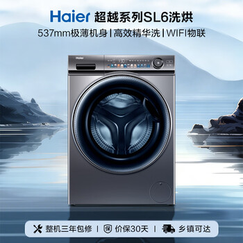海尔超越全自动滚筒洗烘一体 洗衣机带烘干一体 10KG 超薄 除毛洗 家电自营 EG100HPLUSSL6U1