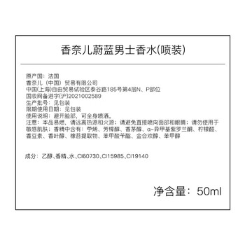 香奈儿蔚蓝男士香水(喷装)X50ml