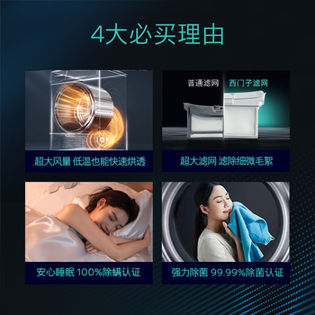 西门子(SIEMENS)iQ300 10KG大容量全自动热泵烘干机 除菌除螨 防缠绕舒展烘 蚕丝被专护 WQ55A2D00W