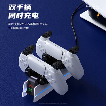 毕亚兹 PS5手柄座充 适用于 PlayStation5无线手柄充电器 双手柄支架 ps5游戏手柄充电底座 带充电指示灯