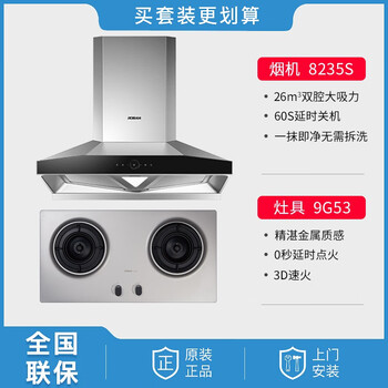 老板 (Robam )双腔大吸力 1100Pa风压 26立方大吸力抽油烟机燃气灶套装8235S+9G53