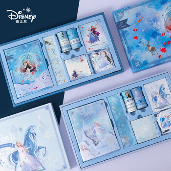 迪士尼(Disney)手账本礼盒套装 儿童女孩生日礼物网红ins少女心记事本 学生笔记本文具套装 艾莎公主蓝