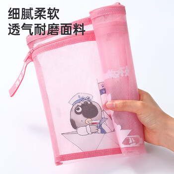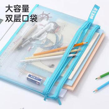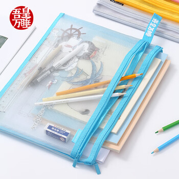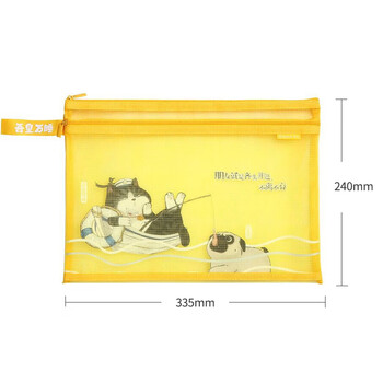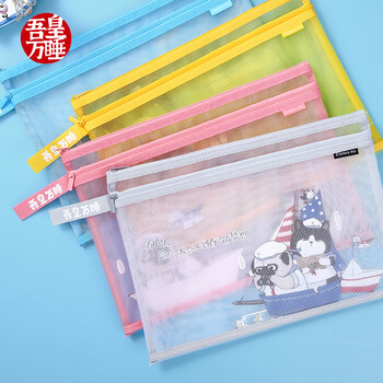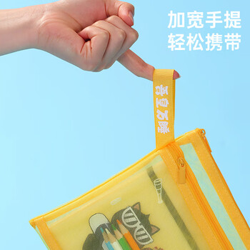 齐心(COMIX)吾皇万睡A4文件袋透明双层网纱拉链袋档案袋办公资料袋试卷票据收纳袋单只 黄色WHA3367
