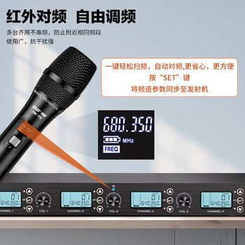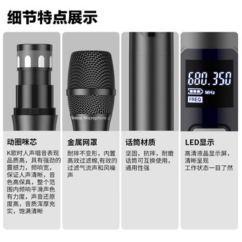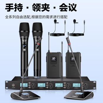 手持话筒*4、接收器*1、适配器*1、彩盒、电源、角码*2、音频线、天线、防滑圈、防风棉、电池、说明书、合格证、保修卡