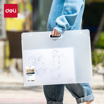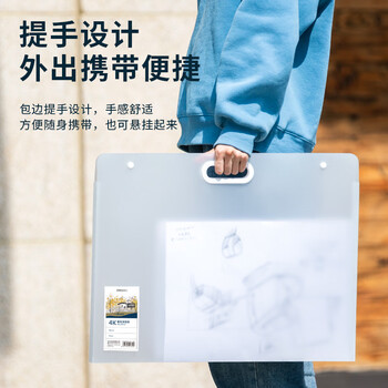 得力(deli)4K规格画稿收纳手提袋 文件夹户外便携式图稿收纳防水书写涂鸦绘画保护 写生美术学生专用72701白