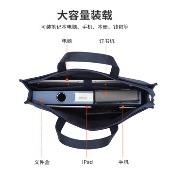 得力(deli)办公会议包事务包文件包 大容量商务拉链手提袋公文包 男女缎面材质防水耐磨电脑隔层 蓝色