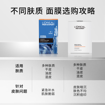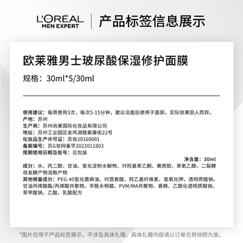 欧莱雅男士玻尿酸保湿面膜5片补水锁水强韧屏障男士护肤品礼物