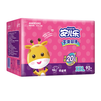 安儿乐(Anerle)干爽超薄纸尿裤XXL92片(15KG以上)【品牌直供 安心品质】