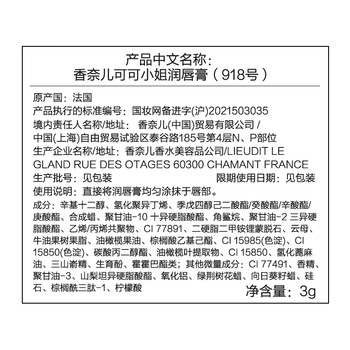 香奈儿(Chanel)可可小姐唇膏3g 白管口红(918号珊瑚粉)滋润保湿生日礼物送女友