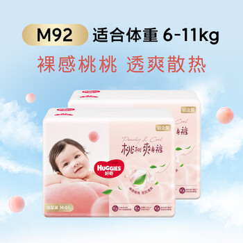 好奇(Huggies)铂金装小桃裤纸尿裤M92片(6-11kg)中号尿不湿【透爽散热】