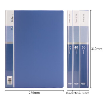 得力(deli)4只组合资料册套装30页+40页+60页*2 小学试卷文件票据档案文件收纳册 学生办公用品大容量27009