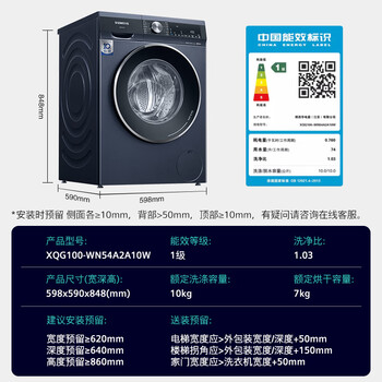 西门子(SIEMENS)悠享系列10kg/7kg洗烘一体机 蒸气护理 智能添加 3D智能立体烘干 WN54A2A10W(湖蕴蓝)【专】