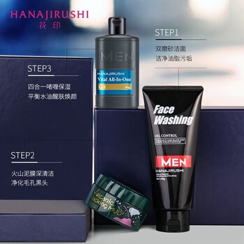 花印男士保湿控油清洁套装(洗面奶150g*1+赋活啫喱80g*1+面膜80g*1)