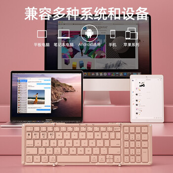 B.O.W航世 HB166 可折叠无线蓝牙键盘79键 ipad平板手机电脑通用办公小键盘 粉色