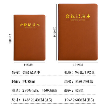 嘉然恒会议记录本加厚笔记本子商务办公文具开会工作记事本皮质本子定制B5棕色