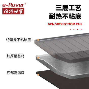 烧烤世家 火狐不粘烧烤盘烧烤工具配件家用韩式煎盘户外烤肉盘铁板 方烤盘