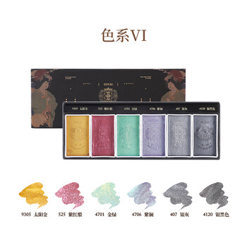 鲁本斯6色珠光国画颜料套装 古彩固体水彩水粉颜料 儿童中国水墨画工具色系Ⅵ-0122004006
