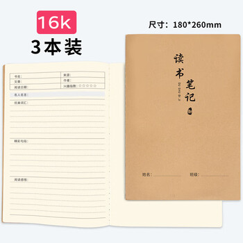 西玛(SIMAA)16k学生读书笔记本阅读摘抄笔记本读后感好词好句记事记录牛皮作业本子 36张3本装 XYDB5