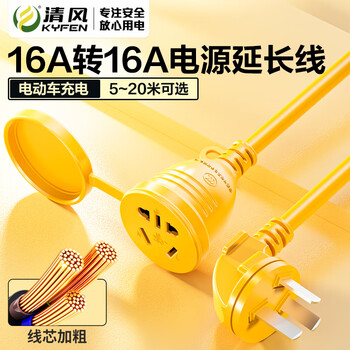 清风(kyfen)充电延长线/插座/插线板/插排/排插/接线板/拖线板 防冻耐寒防水加粗 1.5平线径 16A转16A 全长5米